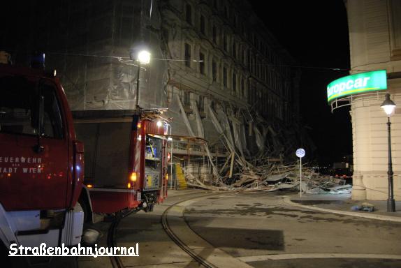 Härter zur Sache ging es in der Christinengasse, wo der Sturm gleich ein ganzes Baugerüst wegfegte.