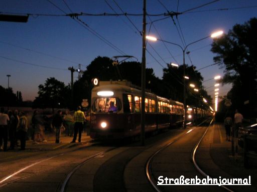 4503+1201 - derzeit üblicherweise Stammwagen im Favoritner Auslauf der Linie 18 - nimmt ebenfalls als Linie O Stadionbesucher auf.