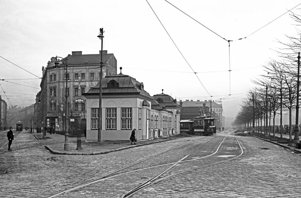 Bahnhof Wienzeile im Jahr 1913 mit einem Zug der Linie 63.