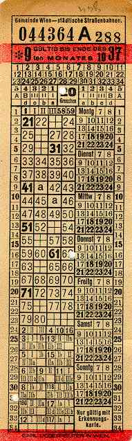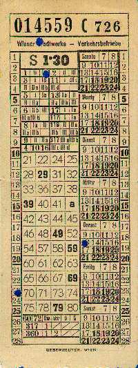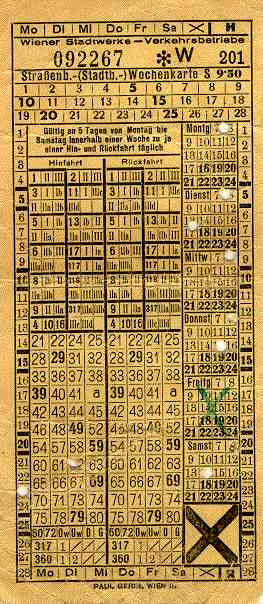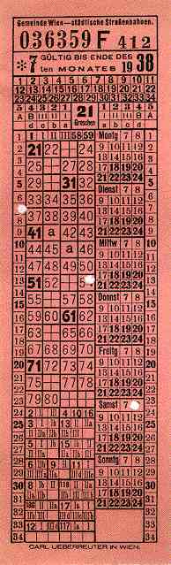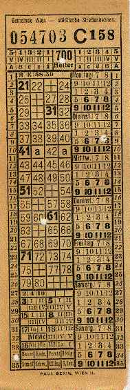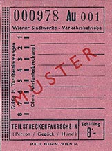 zum Normaltarif beim Schaffner ATS 1,30. Im Krieg wurde "Gemeinde Wien - Städtische Straßenbahnen" in "Wiener Verkehrsbetriebe" umbenannt - eine Bezeichnung, die sich (im Wesentlichen) fast bis ins 21. Jahrhundert gehalten hat.
