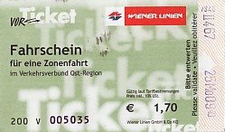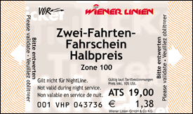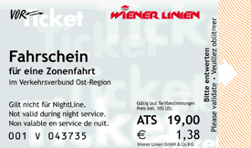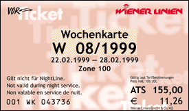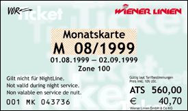 Die Fahrscheine in dem hier abgebildeten Design sind seit 1. September 1999 in Umlauf. Das neue Layout erhöht die Fälschungssicherheit. Weitere Neuheiten waren die doppelte Preisauszeichnung als Vorbote der Euro-Umstellung sowie die Ausweisung der neuen Unternehmensform ("Wiener Linien GmbH & Co KG").