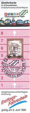 Der erste Fahrschein stammt vom Ersttag des Verkehrsverbundes Ost-Region. An