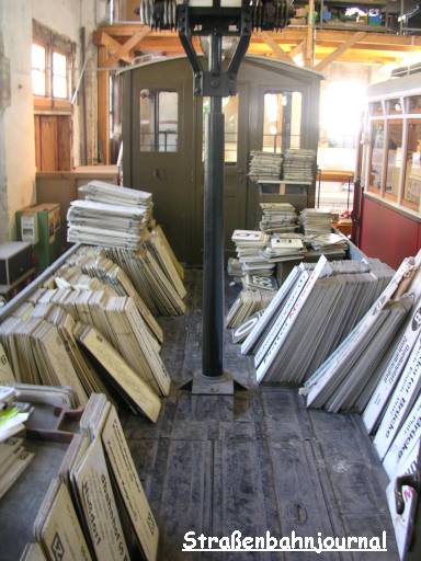 Für Sammler gibt es ein besonderes Highlight: Eine sprichwörtliche Wagenladung voll Kurzstreckentafeln, Routentafeln und Zielschildern wartet darauf, durchstöbert zu werden - für die ergatterten Teile zahlt man Preise um die 3 bis 5 Euro.