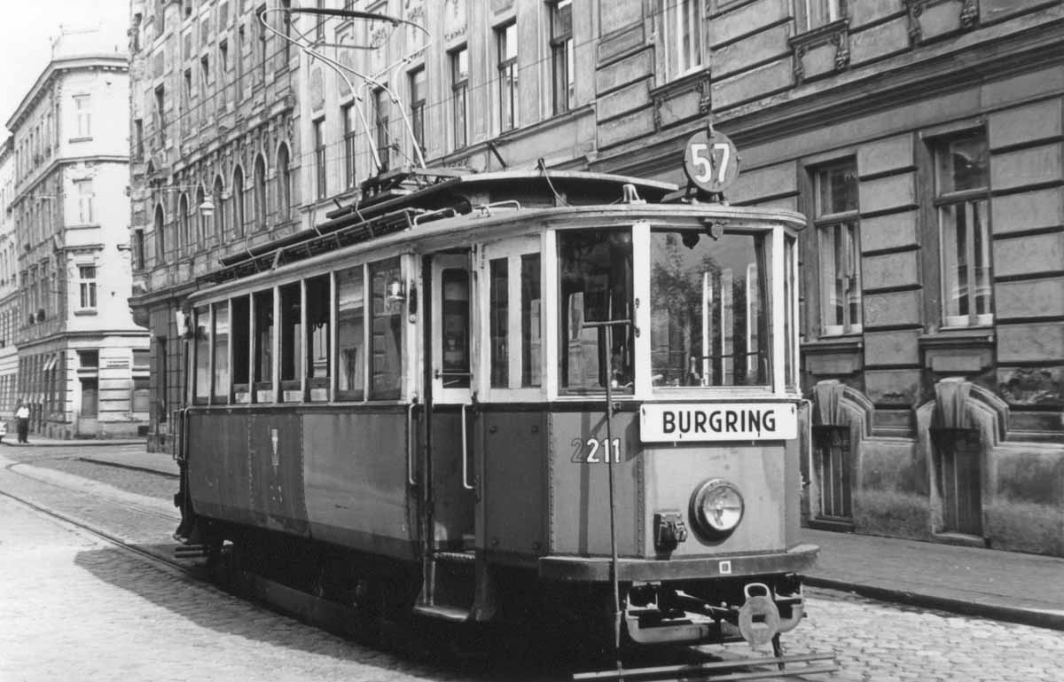 Von ihrem Nothelfereinsatz auf der Linie 57 ab April 1965 zeugt dieses in der Weiglgasse aufgenommene Bild des 2211. Foto Peter Bader