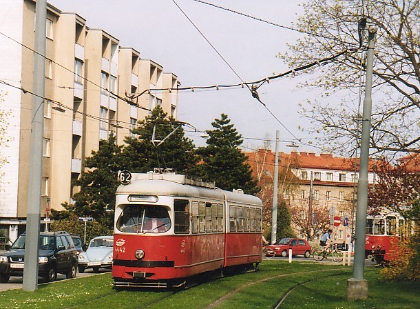 E Nr. 4442 auf der Linie 62 in der Wolkersbergenstraße in Speising am 14.4.2000
