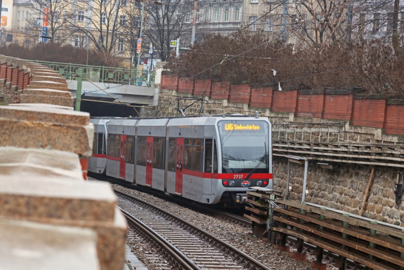 T1 2737 auf der Rampe bei der Koppstraße, Dezember 2015, Bild: Wiener Linien