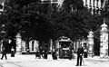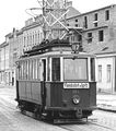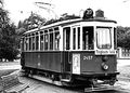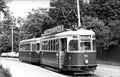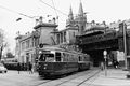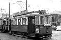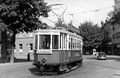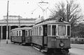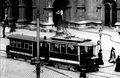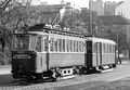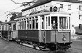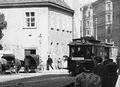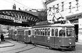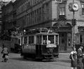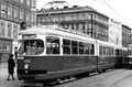 Bald nach Einführung des neuen Linienbezeichnungssystem entstand diese Aufnahme eines Zuges der Linie AK beim Schwarzenbergplatz. Das Liniensignal stammt aus der ersten Serie mit großem Index. Hinter dem Zug, der aus einem D-Triebwagen und einem Sommerwagen besteht, ist übrigens ein Zug der Linie J, ebenfalls mit einer Ursprungsscheibe besteckt, zu sehen. Foto: ÖNB