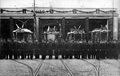 Zum Abschluss noch ein Wort zur Handhabung der Signalscheiben. Zum Bestecken wurde in erster Linie eine sogenannte Besteckgabel verwendet, die sich außer natürlich in den Betriebsbahnhöfen auch an allen Punkten des Netzes, wo häufig umgesteckt werden musste, befand. Notfalls konnte dafür auch die an den alten Wagen übliche lange Weichenkrücke verwendet werden. An kritischen Stellen konnte das Umstecken auf der Strecke auch durch eigens entsandte und mit einer Besteckgabel ausgerüsteten Posten bewerkstelligt werden, zum Beispiel zu Allerheiligen auf dem Schwarzenbergplatz und in der Weiskirchnerstraße, wo der Signalscheibentausch der Züge der Linie 71/74 durch solche Posten erfolgte. Allgemein war es so, dass die für das Umsignalisieren nötigen Scheiben auf den Triebwagen mitgeführt werden mussten. Umso verwunderlicher ist es, dass trotz dieser jahrzehntelangen Praxis niemals ein spezieller Aufbewahrungsort für die am Wagen vorhandenen gerade nicht benötigten Scheiben geschaffen wurde. So wurden sie oft außen an der Plattformschrägwand hinter die Prellschiene gesteckt oder sie lagen, so wie beispielsweise bis weit in die Siebziger Jahre in den Triebwagen der Linie D des Bhfs. Gürtel üblich, die immer auch die 36er-Scheiben für allfällige Kurzführungen mitführen mussten, einfach vorne und hinten auf den Plattformen der M-Triebwagen - ein heute undenkbarer Vorgang, da sicher längstens nach zwei Touren wohl keine Scheiben mehr vorhanden wären. Während die auf der vorderen Plattform aufbewahrten Scheiben wenigstens in dem durch eine Kette oder Stange abgesperrten Raum des Fahrers unbehelligt liegen konnten, lagen sie auf der hinteren Plattform im dem Publikum frei zugänglichen Raum und die Fahrgäste traten bei entsprechend starker Besetzung des Wagens, wo jeder freie Platz zum Stehen genutzt werden musste, einfach auf die dort liegenden Signalscheiben drauf. Dementsprechend war auch der Zustand der 36er-Scheiben.